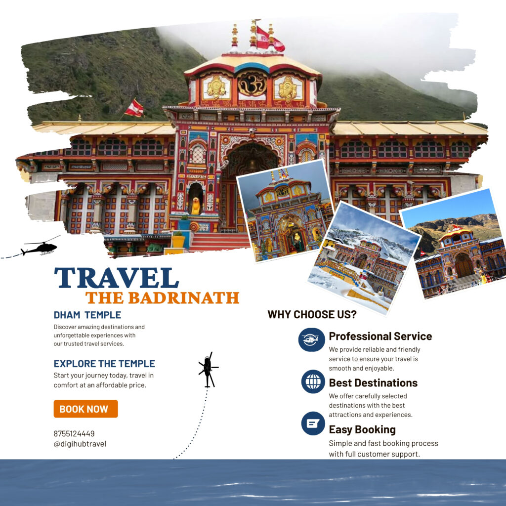 Badrinath Temple is the final destination of the Char Dham Yatra and is dedicated to Lord Vishnu. Located at an altitude of 3,133 meters, the temple lies on the banks of the Alaknanda River. It is easily accessible by road, making it suitable for all pilgrims. Before entering the temple, devotees take a holy bath in the Tapt Kund. The temple’s vibrant structure and peaceful surroundings provide a divine atmosphere. According to beliefs, visiting Badrinath completes the Char Dham Yatra and grants spiritual liberation. The journey ends here with a sense of peace, devotion, and fulfillment.